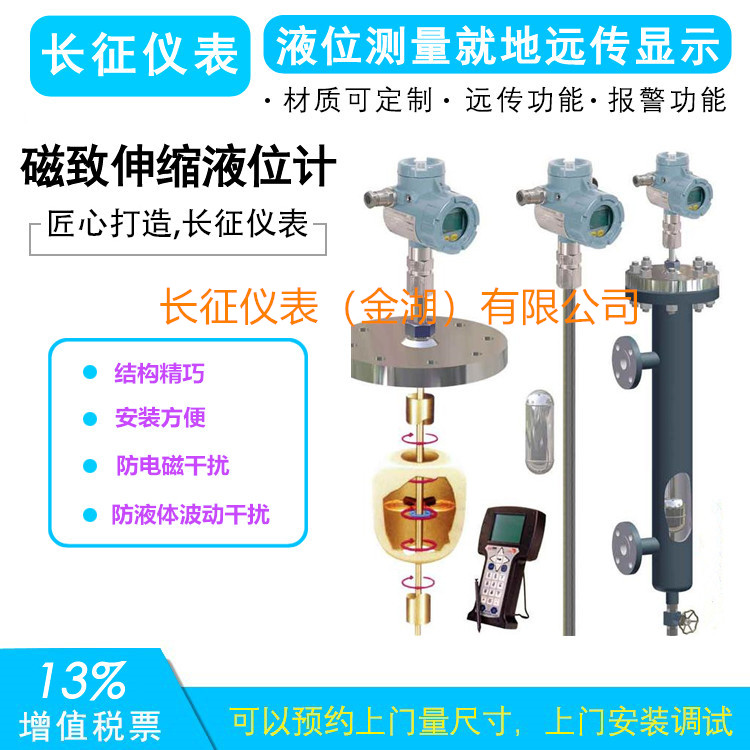 磁致伸縮液位傳感器是采用磁致伸縮原理制造的高精度、超長行程絕對位置測量傳感器。該產品由脈沖電路、波導線、回波信號單元、結構件和保護套管組成,不但可以測量運動物體的直線位移,而且可以給出運動物體的位移和速度模擬信號。
