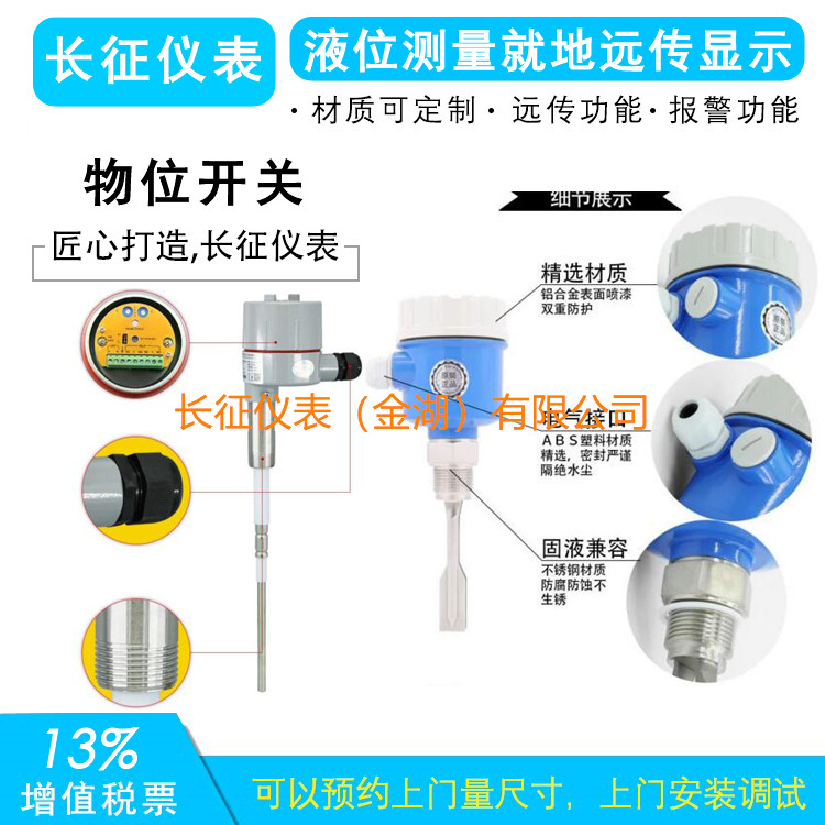 長征儀表廠有3種物位開關,下面有阻旋式做介紹,阻旋是一種用于固態物料(包括粉狀、粒狀、塊狀、膠狀等)的物位控制器。具有密封性好、過載能力強、輕便易裝、輸出觸點容量大等特點。針對不同比重的物料可通過調整彈簧的拉力來實現,其接觸物料部分全為不銹鋼材料。