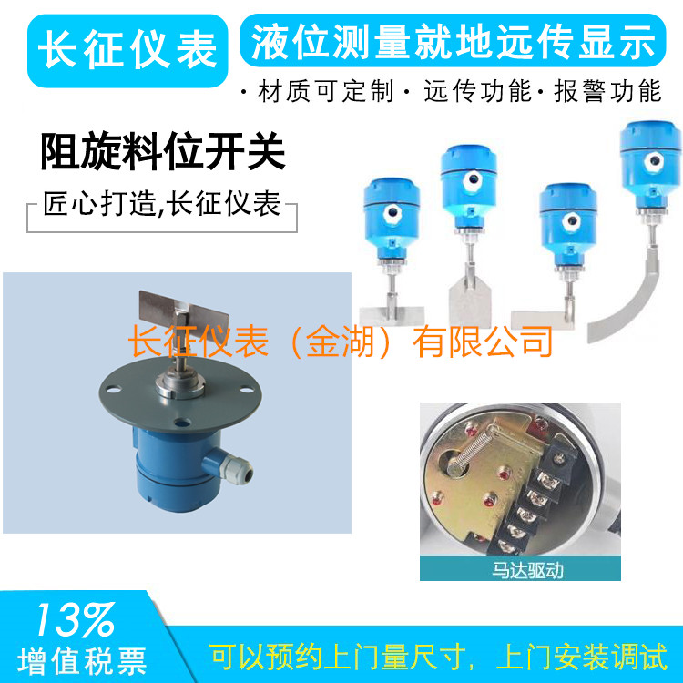 阻旋料位開關(guān)是一種用于固態(tài)物料(包括粉狀、粒狀、塊狀、膠狀等)的物位控制器。具有密封性好、過載能力強(qiáng)、輕便易裝、輸出觸點(diǎn)容量大等特點(diǎn)。針對不同比重的物料可通過調(diào)整彈簧的拉力來實(shí)現(xiàn),其接觸物料部分全為不銹鋼材料。